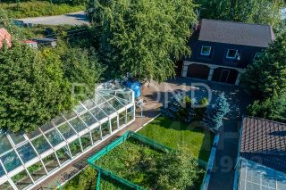 Участок полностью облагорожен, произведены все ландшафтные работы. Высажены плодовые деревья и цветы. В пруду водится рыба. Есть зимняя беседка с мангальной зоной, гараж на 3 машиноместа и отдельное жилое помещение для персонала.