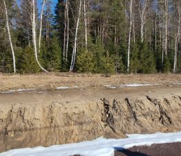 Оба участка правильной формы. Расположены рядом с лесом. Участки ровные, высокие. Растут ёлочки. Песчаная почва.
