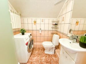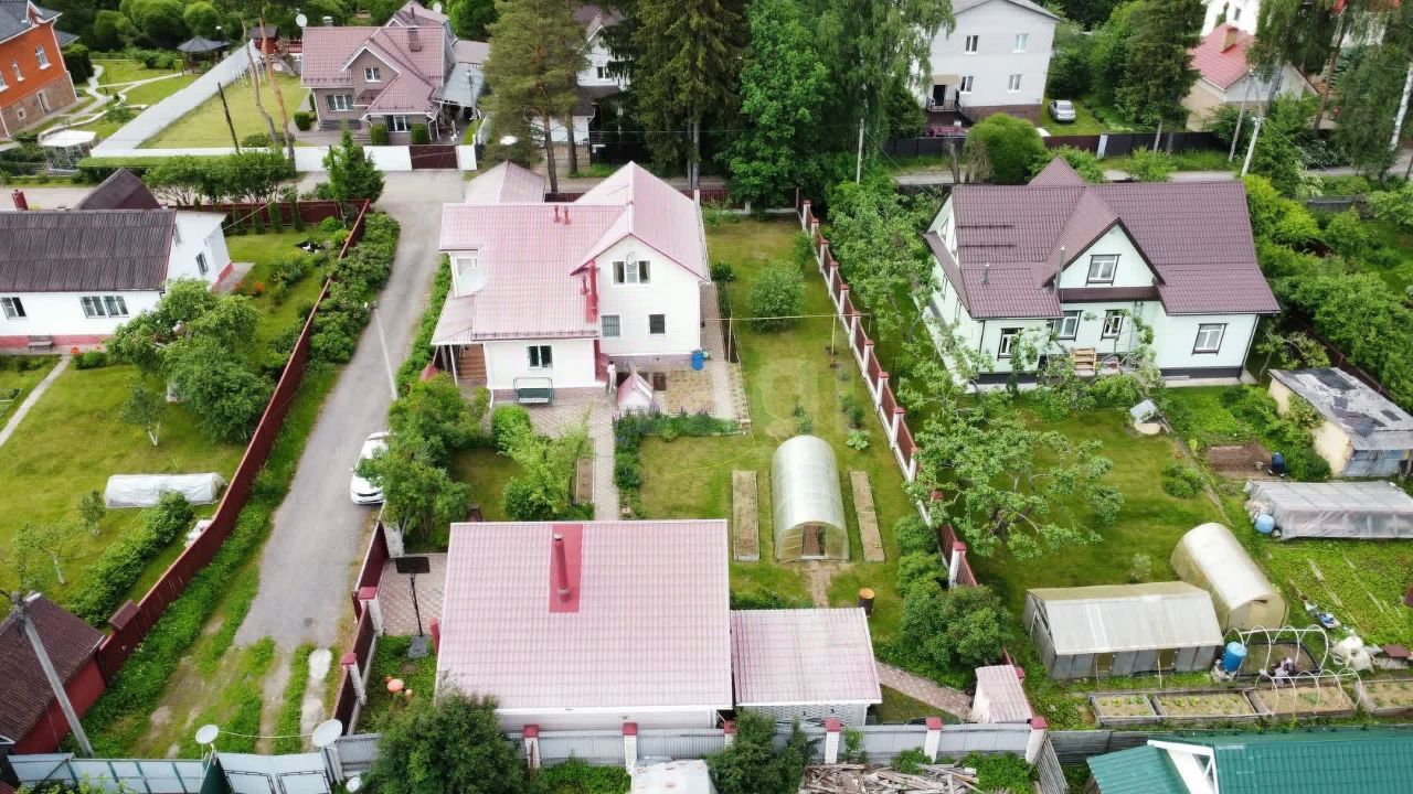 Двухэтажный дом, построенный из дерева площадью 242 кв.м. на ровном и сухом участке 9 соток. На первом этаже расположена просторная кухня, уютная гостиная, 2 спальных комнаты для детей и 1 санузе. На втором этаже находятся 2 спальни, гардеробная, мансарда и санузел При желании одну из комнат можно сделать рабочим кабинетом. На цокольном этаже находится сердце дома - котельная и большие кладовые для хранения вещей