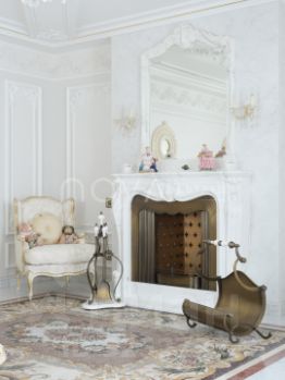 Гостиная с камином — сердце дома, где доминирует ручная мебель Provasi. Облицованный мрамором камин дарит живое тепло, а большие окна наполняют пространство светом и воздухом.