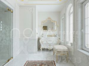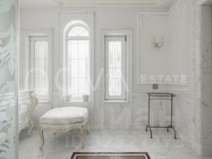 Особняк площадью 550 м² выполнен в канонах неоклассики, где царят симметрия, благородные пропорции и достоинство. Фундаментальность подчеркивается отделкой из натурального камня: гранит, мрамор и оникс говорят о безупречном вкусе и долговечности. Участок в 25 соток — это приватный мир, где вековые сосны и ели создают эффект собственного заповедного леса, а плодовый сад и изящное мощение дорожек добавляют романтического шарма ушедшей эпохи.