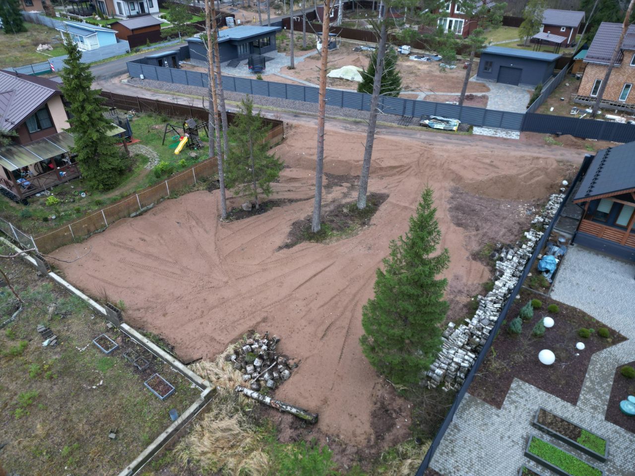 - Земельный участок ровный, сухой, отсыпан песком, не огорожен;