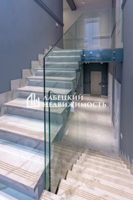 -Лестница на второй этаж имеет бетонное основание, датчик подсветки и оформлена ограждением из закаленного стекла
