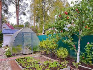 Много посадок: яблони, черная, красная и белая смородина, ежевика, малина, клубника, большая теплица.