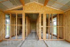 Дом построен по каркасно-щитовой технологии. Это настоящий деревянный дом, на стоечно-балочной системе с заполнением межстоечного пространства профильными деревянными элементами и утеплителем.