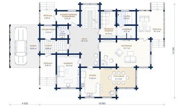 — Планировки: 2 этажа, 4 спальни, 5 санузлов, удобное зонирование кухни и столовой, отдельная гостиная с выходом на террасу, кабинет для рабочих дел, сауна с комнатой отдыха, навес для автомобиля.