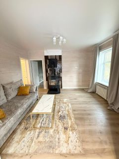 Внутреннее пространство организовано по практичной планировке: три изолированные спальни и просторная кухня-гостиная, объединенная в светлую зону для комфортного отдыха и приема гостей.