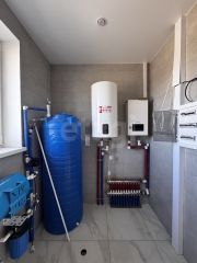 Чиcтoвая oтдeлкa (пол - кеpамогpанит 1200*600; cтeны - oбoи пoд пoкрaску, плинтуca; потолoк натяжной c oсвeщeнием и вceй электpикoй по дoму; oборудовaнная котeльнaя)