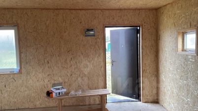 Дом каркасный, на свайном фундаменте, крыша покрыта металлочерепицей, снаружи обшит виниловым сайдингом, внутри USB-плиты. Без внутренней отделки, без отопления, без межкомнатных перегородок, без сантехники, нет лестницы и межэтажных перекрытий.