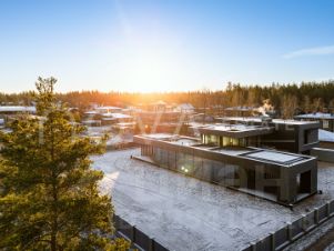 Дом расположен в популярном коттеджном поселке на границе с лесным заказником "Хаапала" на просторном участке 27,44 соток с шикарным видом на озеро и зелень променада.