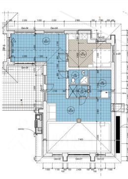 Площадь основного дома 210 м2 , к нему примыкает капитальное строение (бассейн, баня ) площадью 100 м2. Основной дом и здание бассейна соединяются галереей с зимним садом. Год постройки 2014 .