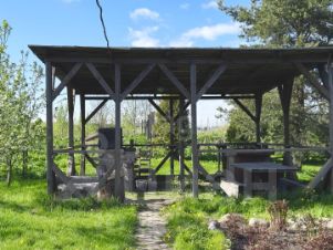 На территории есть летняя беседка, хоз.постройка, теплица, пруд и парковка.