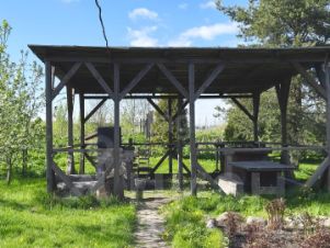 На территории есть летняя беседка, хоз.постройка, теплица, пруд и парковка.