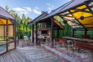 Коттедж 228 кв.м с просторной кухней с выходом на террасу, бассейн и зону барбекю. Большая гостиная и 3 спальные комнаты.