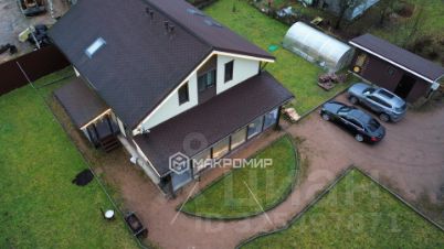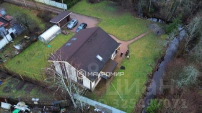 На участке,ближе к ручью , расположен новый каркасный двухэтажный дом с мебелью и техникой площадью 200 м². Просторная кухня-гостиная и три спальни с гардеробными, два санузла, мансардные окна Fakro .