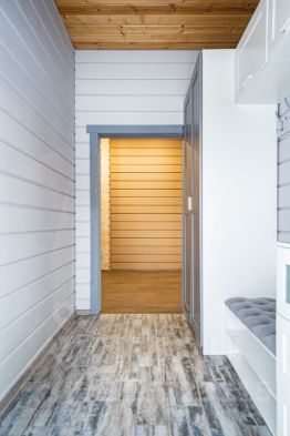 - 1-й этаж: гостеприимная гостиная, санузел, бойлерная, прихожая, холл, кабинет.