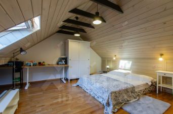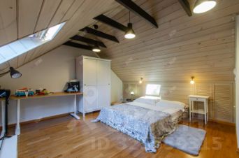 3 этаж: спальня 18 м² с мансардным окном и местами хранения.