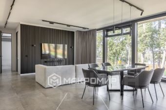 - Современная стилистика дома с панорамными остеклением
