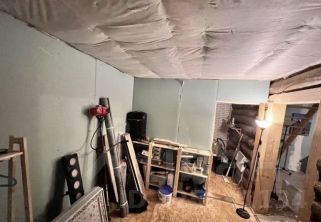 1 этаж утеплён минеральной ватой и обшит гипсокартоном