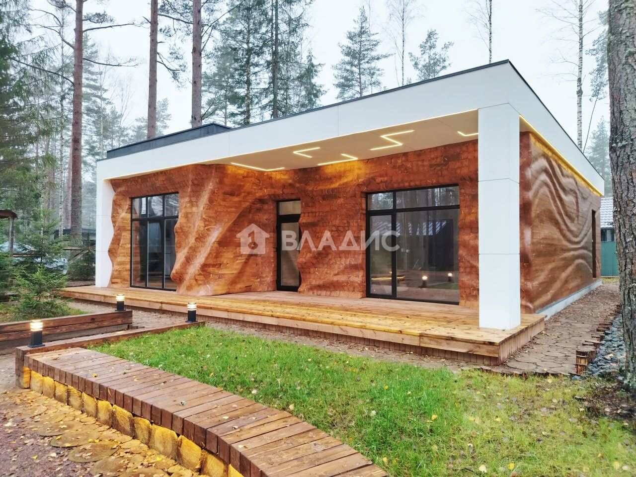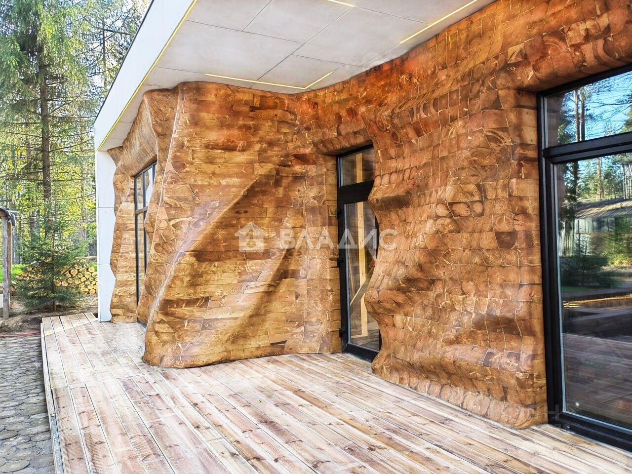 -Эксклюзивная отделка фасадов дома по авторской технологии " Мягкое дерево" в стиле "Параметрическая архитектура".