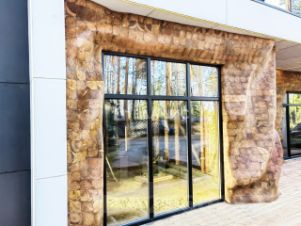 -Высокие потолки, панорамные окна.