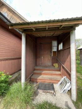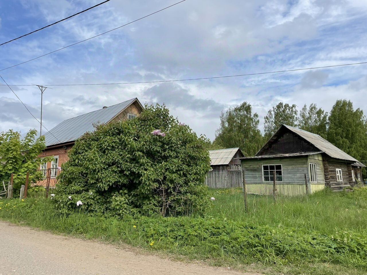 Участок прямоугольный. На участке кроме дома есть еще постройки: сарай, баня, временные постройки, которые использовались раньше как гостевые домики.
