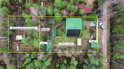 Участок по факту 12 соток сухой, хорошо освещается солнцем. Забор по всему периметру, сделано мощение дорожек, 2 парника, на участке сохранены шикарные сосны. Для отдыха на участке обустроена мангальная зона с крытой беседкой и огромным столом. Действующая баня с комнатой отдыха и душем (бойлер на 150 литров). На участке 2 хозяйственных блока, туалет в отдельной постройке на улице с канализацией и водопроводом (в доме есть помещение под санузел с душевой можно обустроить), парковочное место на 3 машины. На участке есть гараж.