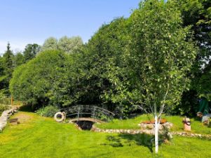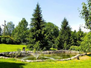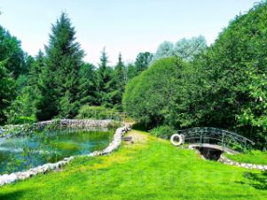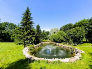 - Живописное место, выполнен ландшафтный дизайн, особенности местности оригинально дополняют участок. По участку проходит сухой ручей, сохранены многолетние ели, деревья и кустарники. Изюминкой участка является естественный пруд, наполняющийся водой из подземных ключей. В пруду водятся такие виды рыб как карп, карась, толстолобик, линь, белый амур. (Улов гарантирован, даже не выходя за территорию участка).