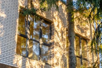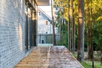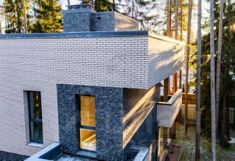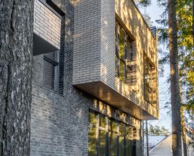 Локация и окружение: Дом расположен рядом с "Охта Парк", в закрытом, безопасном квартале среди таких же стильных архитектурных решений. Высокие ели создают ощущение уединения и покоя.