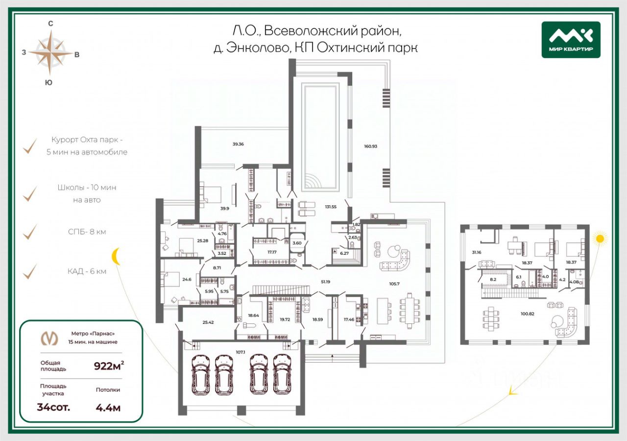 Арт. 124263697 Ищите дом, который подчеркнет статус и обеспечит высокий уровень жизни? Новейшее предложение в КП ОХТИНСКИЙ ПАРК! В продажу вышел новый загородный дом в стиле модерн, с элементами архитектуры Фрэнка Ллойда Райта и великолепным панорамным остеклением, площадью 922 кв.м, на участке 34 сотки! Этот дом не просто ваша будущая семейная резиденция это философия стиля, эстетики, образа жизни и статуса! О ПОСЕЛКЕ: Дом расположен в одном из самых значимых элитных поселков ОХТИНСКОМ ПАРКЕ. Это отличный выбор для тех, кто ценит красоту природы, но не желает отказываться от комфорта городской жизни! В поселке создана вся необходимая инфраструктура, чтобы жизнь оставалась удобной: широкие асфальтированные дороги и пешеходные тротуары, детские площадки для разных возрастов, частный детский сад и лучшие частные школы в нескольких минутах на авто, спортивные площадки, кафе для утреннего кофе, магазины, элитные салоны и многое другое. Статусные соседи, однородное окружение! Работает профессиональная УК, закрытая территория и круглосуточная охрана (3 КПП) обеспечат безопасность вашего проживания. На территории поселка сохранен великолепный хвойный лес с реликтовыми соснами, которые создают волшебную атмосферу и уникальный микроклимат. Охтинский парк поселок, в котором сочетаются комфорт, престиж, безопасность, природа и близость к Санкт-Петербургу! О ДОМЕ: В концепции архитектуры и планировочных решений объединены 2 принципа эстетика минимализма и функциональности. Дом без отделки имеет свое неоспоримое преимущество - позволяет Вам самим воплотить любой дизайн-проект и максимально учесть все ваши желания и потребности, создает атмосферу для вдохновения и индивидуального дизайна! Дом площадью 922 кв м , включает: кухню-гостиную 117 кв.м, 6 мастер-спален со своими гардеробными и с\у, просторный кабинет 30 кв.м, зону отдыха 100 кв.м, спа зону с бассейном, парной, хамамом и пр, шахту лифта для удобства перемещения между этажами, постирочную, спортзал, гараж на 4 автомобиля. Дом впечатляет своими пропорциями и высотой потолка от 5,4 м- до 4 м! Панорамное остекление по всему периметру создает ощущение единства, пространства, максимального наполнения светом! Дом полный естественной красоты, в который хочется возвращаться! Технические характеристики: - Стены наружные - монолит, - Высота потолка: (1 этаж: 5,4 м гостиная; 4,4 м остальная часть; 2 этаж - 3,9 м) - фундамент - монолитная плита 300мм - окна производитель - reynaers Устройство вентилируемого фасада: 1. Алюминиевые кронштейны зафиксированные с применением химанкеров 2. Утеплитель роквул фасад в два слоя по 100мм в разбежку по швам и закрепленный на парашюты каждый слой ( 200мм) 3. НЕГОРЮЧАЯ МЕМБРАНА ТЕНД (TEND) 4. алюминиевая подсистема из профилей Т, L и омега 5. праймер, активатор, финский герметик 6. Керамогранит Laminam 3.5 Mm 100x300 с запилом углов под 45 градусов 7. Планкен лиственница, сорт прима, скошенный с покраской на производстве и высушенные в тепловой камере, закреплены на невидимые планки "расческа" Устройство плоской кровли с наплавляемой гидроизоляцией: 1. Железобетонная плита 2. пароизоляция 3. утеплитель 4. уклонообразующая стяжка 5. нижний слой технониколь гидроизоляция 6. верхний слой технониколь гидроизоляции 7. воронки двойные технониколь с подогревом КОММУНИКАЦИИ: - электричество 60 кВт, заведено в дом - канализ