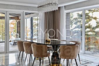 Предлагается к покупке трехэтажный дом 594,7 кв. м, с террасой 40 кв. м с панорамным остеклением, гаражом на три а/м и банным комплексом. Элегантный объект со стилистикой Ар-деко: много блеска, полутона природных красок, четкая геометрия каждого помещения. Баланс между металлом, деревом, камнем и стеклом. Место, где много света и воздуха.