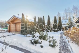 Банный комплекс из клееного бруса Honka с сауной, может рассматриваться, как гостевой дом. По внешнему периметру - система видеонаблюдения.