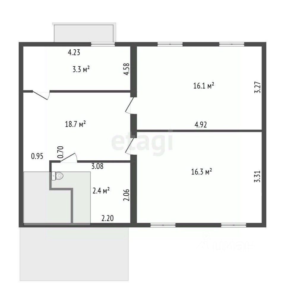 2-й этаж: три комнаты (16, 16 и 7 кв.м), кладовка, второй санузел.