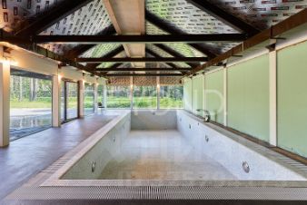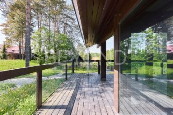Предлагается к покупке современный дом с панорамным остеклением рядом с курортом "Охта Парк". Домовладение расположилось на 110 сотках и включает в себя основной дом 830 кв. м со SPA-комплексом, гараж 150 кв. м на четыре машиноместа, летнюю кухню 50 кв. м и дом для персонала 134 кв. м. Дом построен по фахверковой технологии. Огромные окна открывают захватывающий вид на сосновый бор. В доме расположена просторная гардеробная, кабинет, гостиная с камином с отделкой оникса, кухня и обеденная зона с выходом на террасу. В отдельном крыле расположен SPA-комплекс с переливным бассейном и возможностью установки сауны или хаммама идеальное место для релаксации. На втором этаже расположены три спальни, каждая с собственной ванной комнатой и гардеробной. Мастер-спальня имеет выход на террасу с панорамным видом. Также есть пространство мансардного этажа для библиотеки или свободного назначения. Дом подключен ко всем необходимым коммуникациям: магистральный газ, электричество 60 кВт, центральный водопровод, локальные очистные сооружения. В каждом строении установлены теплые водяные полы и вентиляция. Участок огорожен забором и благоустроен. Здесь есть зарыбленный пруд с мостиком, мощеные дорожки, уличное освещение. С задней стороны участка протекает река Охта, через нее есть собственный выход на просторные луга для прогулок. Это место, где можно наслаждаться тишиной и красотой природы, не отказываясь от городского комфорта.