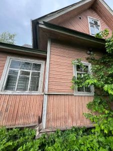 Предлагается к продаже двухэтажный жилой дом площадью 120 квадратных метров, расположенный в поселке Тярлево на улице Песочной, в Пушкинском районе Санкт-Петербурга. Дом был построен в 1960 году, выполнен из бревенчатых материалов, что характерно для традиционной деревянной архитектуры региона.