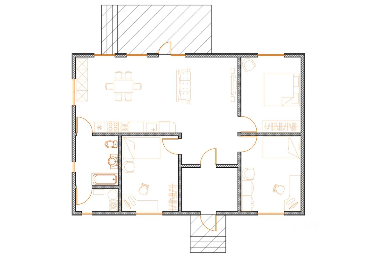 В доме 3 большие спальни по 14м, большая кухня-гостиная 45м с кухонной мебелью, в одной спальне свой санузел, 2й санузел общий установлена качественная новая сантехника, водогрей на 100 литров, из гостиной выход на большую веранду.