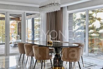 Предлагается к покупке трехэтажный дом 594,7 кв. м, с террасой 40 кв. м с панорамным остеклением, гаражом на три а/м и банным комплексом. Элегантный объект со стилистикой Ар-деко: много блеска, полутона природных красок, четкая геометрия каждого помещения. Баланс между металлом, деревом, камнем и стеклом. Место, где много света и воздуха.