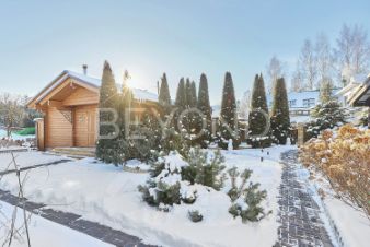 Банный комплекс из клееного бруса Honka с сауной, может рассматриваться, как гостевой дом. По внешнему периметру - система видеонаблюдения.