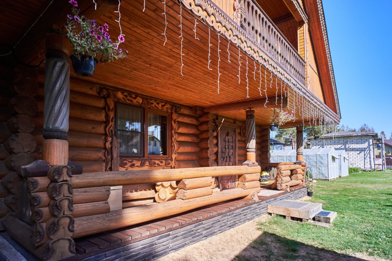 Материал: качественное бревно с отделкой под старину — дом дышит и создает атмосферу уюта и гармонии.
