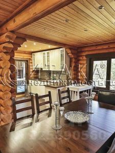 - Первый этаж: гостиная с кухней и финским камином/печью, обогревающим оба этажа;