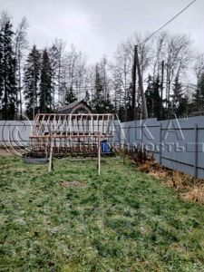 Участок полностью огорожен надежным забором из профлиста и сетки рабицы.