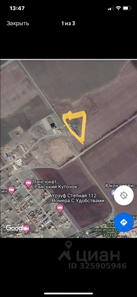 Участок 60 соток. , в курортном развивающимся поселке ДНР поселок Урзуф. К морю 800 метров дорога асфальтированная. Я собственник,документы в порядке в Росреестр внесено.