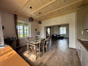 Дом полностью оборудован для жизни: все коммуникации заведены в дом (отопление, электричество, газ, канализация септик), сделан ремонт, в наличии вся мебель и техника (холодильник, посудомоечная машина, плита газ, стиральная машина, TV, Wi-Fi и т.д.). Дом продаётся с мебелью и бытовой техникой.