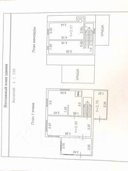 На первом этаже расположены веранда площадью 7,5 квадратных метров, кухня площадью 12,5 квадратных метров и жилая комната площадью 10 квадратных метров. Мансарда имеет жилую площадь 8,5 квадратных метров.