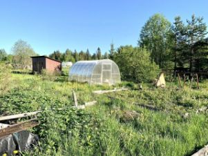 Земельный участок площадью 10 соток оборудован различными постройками, включая сарай, туалет, баню и теплицу. Дом с мансардой и верандой также находится в собственности(оформлен как жилой).