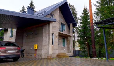 Для автомобилей предусмотрен навес. Парковочная площадка на 3 автомобиля вымощена брусчаткой.