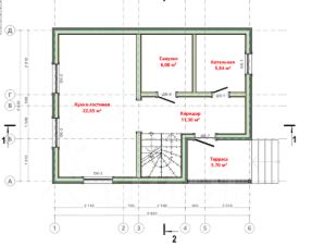 Описание: первый этаж: кухня-гостиная, санузел, котельная.