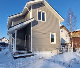Двухэтажный каркасный дом, обшитый широкой вагонкой с имитацией бруса (карельский профиль)