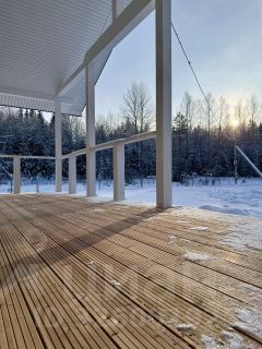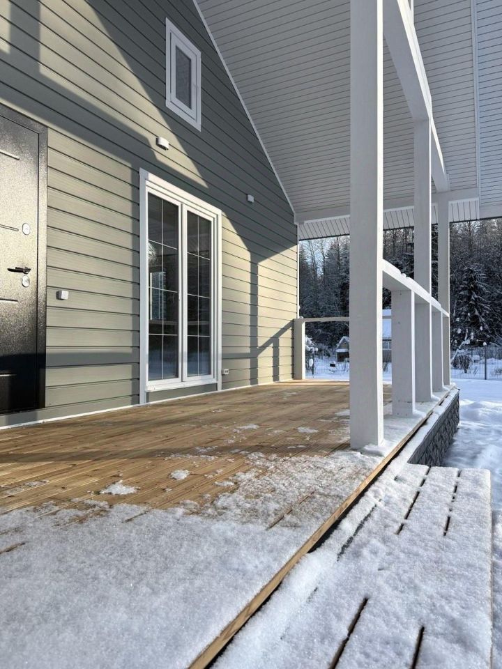 Крыша металлочерепица, каркас усилен и обшит плитами ОСБ, утеплен плитами Rockwool, с наружи обшит сайдингом, входная дверь металлическая с терморазрывом, стеклопакеты двухкамерные со шпросами , внутри все стены и потолки покрашены в 2 слоя декоративным антисептиком для древесины, террасная доска из термодревесины.