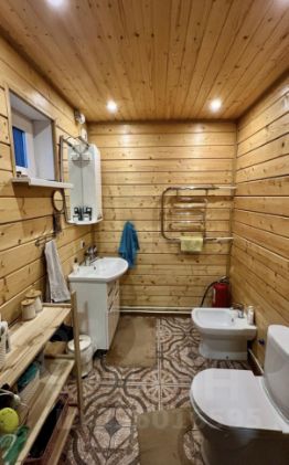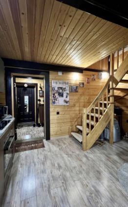 - Внутри дома отделка сделана под имитацию бруса, на полу плитка и ламинат, плюс везде теплые полы.
